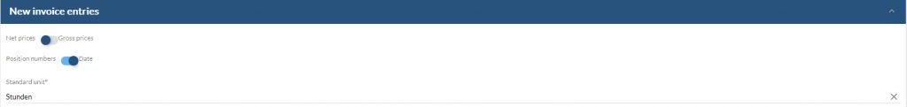 You can predefine some settings when creating new invoice entries here. Configure the settings according to your needs